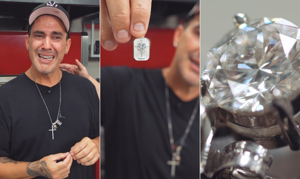 Andre Marques se emociona ao receber joias feitas das cinzas de sua cachorra, que morreu há dez meses: ‘Lembrança eterna’